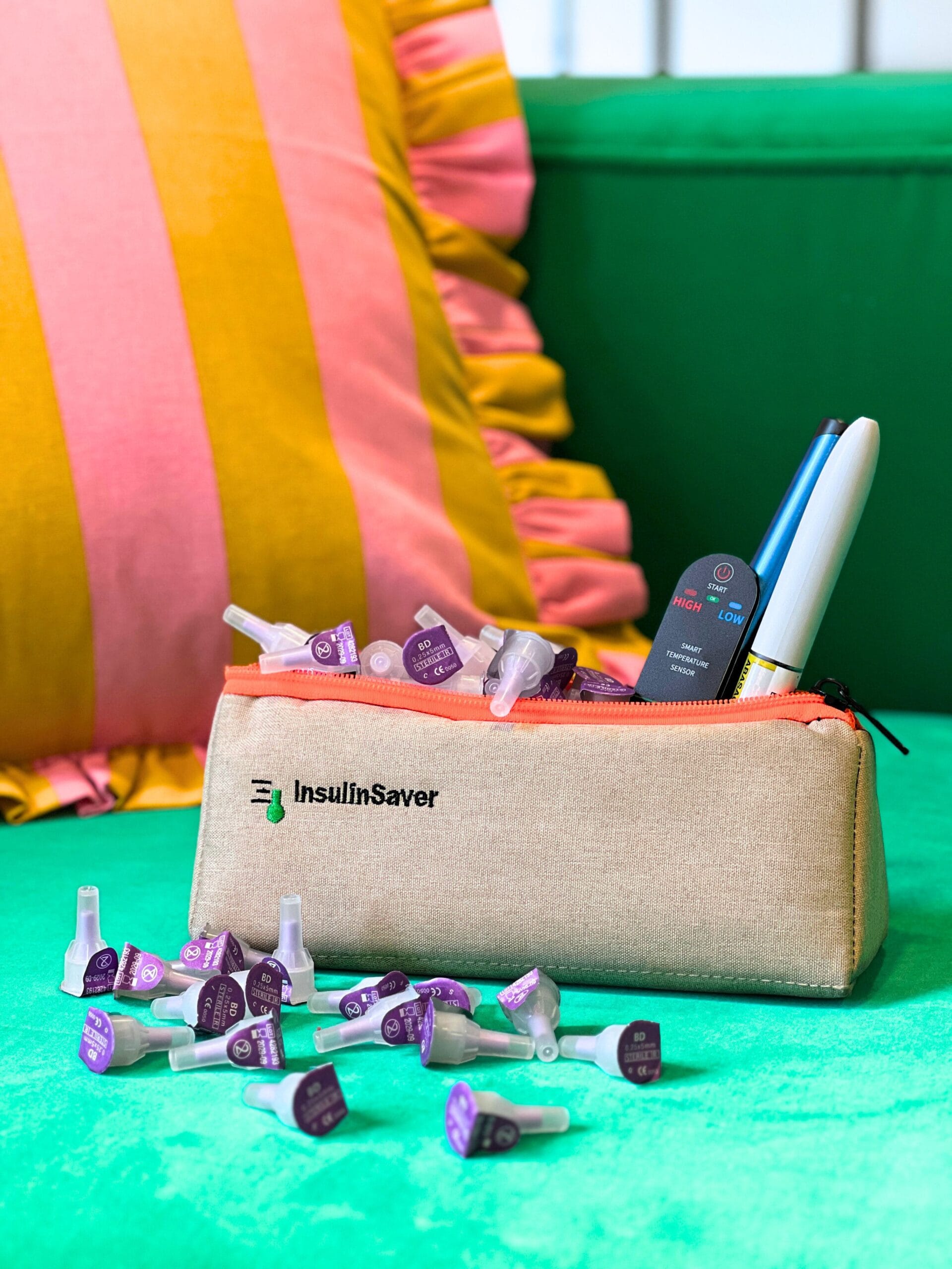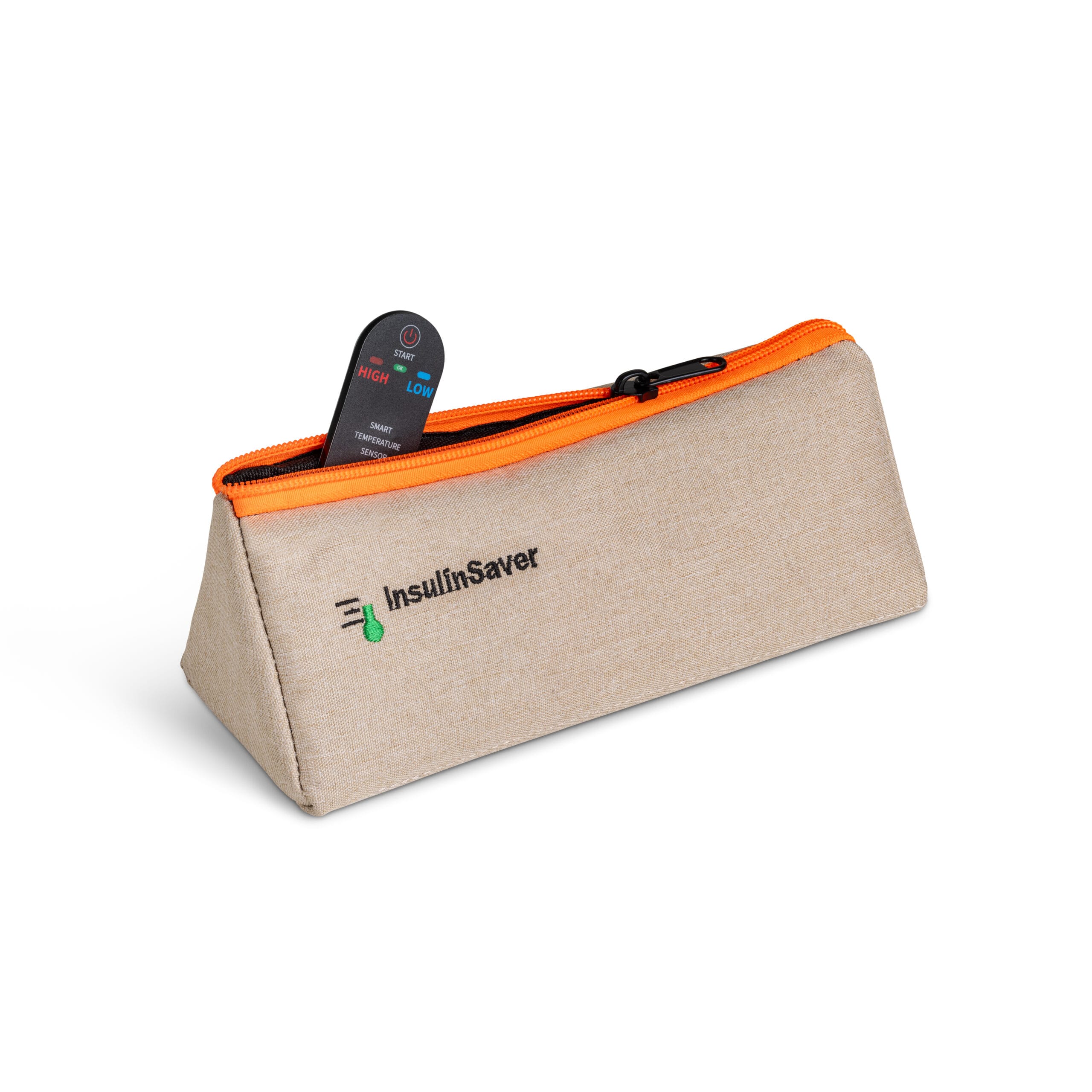 Мы рекомендуем комбинировать сумку с интеллектуальным датчиком температуры InsulinSaver — вы получите автономное охлаждающее решение для вашего инсулина с контролем температуры.