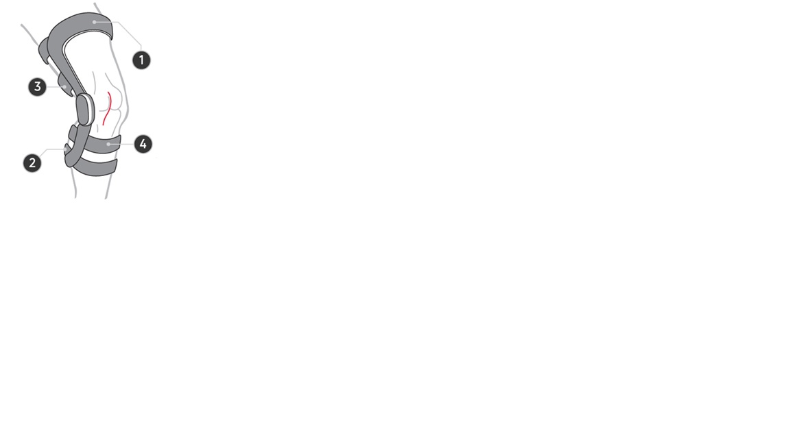 Izmantojot īpašo siksnu sistēmu, DonJoy tehnoloģija palīdz nodrošināt aizmugurējo augšstilba kaula slodzi PCL (aizmugurējā krusteniskā saite) traumu gadījumā.